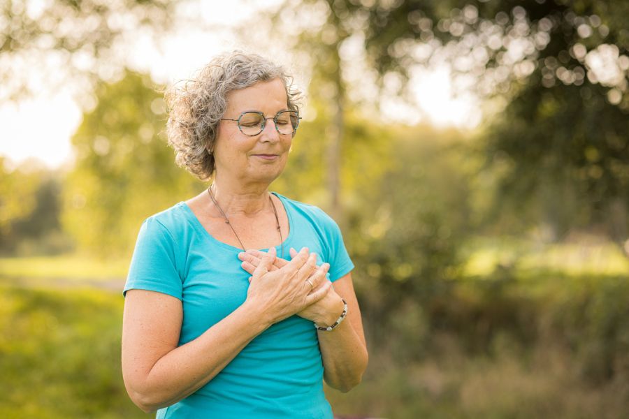 - Lege deine Hände auf die Stelle, die Aufmerksamkeit braucht und atme bewusst dort hin.